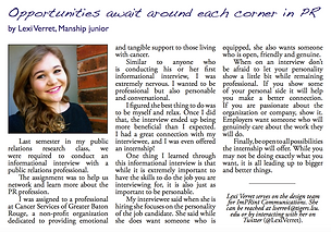 During my time on the communication committee in the Public Relations Student Society of America (PRSSA) at LSU, I wrote articles for the organization's newsletter, The PRogram, and blog.